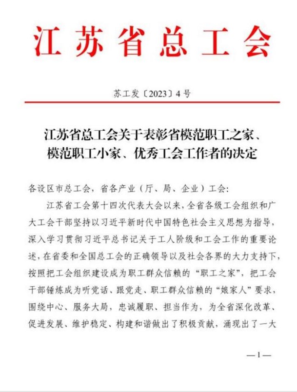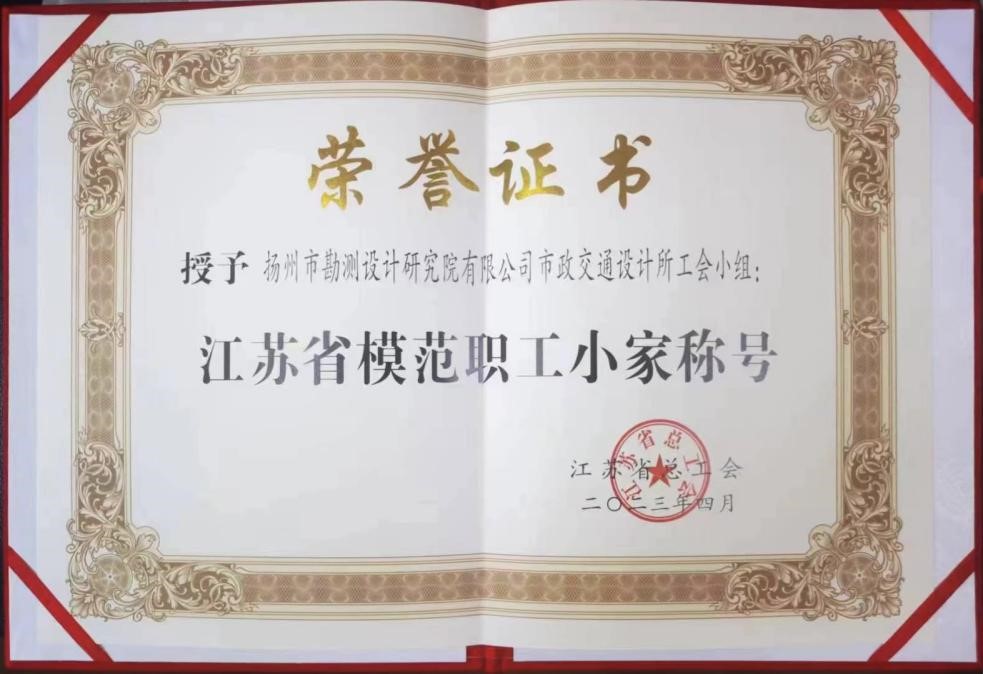 近日,江蘇省總工會(huì)印發(fā)《關(guān)于表彰江蘇省模范職工之家、模范職工小家、優(yōu)秀工會(huì)工作者的決定》,揚(yáng)州市勘測(cè)設(shè)計(jì)研究院有限公司市政交通設(shè)計(jì)所工會(huì)小組被江蘇省總工會(huì)授予“江蘇省模范職工之家”稱號(hào)。